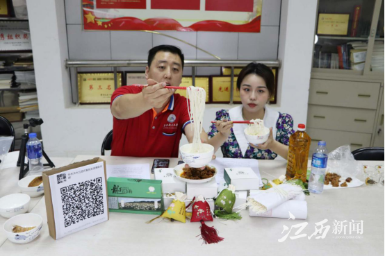 8月20日、21日下午六点,直播准时开始。指导老师刘伟和队员们一起带上黄茅镇的土特产——笋干、山茶油、高山手工茶、黄茅土面、龙牙百合粉、花椒版迷迭香包、谷酒,细致讲解每样农产品的特点、优势。为增强直播的趣味性,刘伟老师积极与网友互动,试吃面条、笋干,品尝黄源水酒,直播间热度不断上涨,网友纷纷点赞,下单购买。
