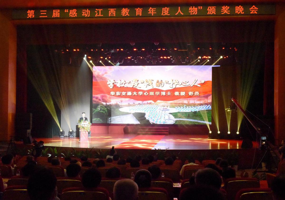 9月7日,江西省委教育工委、江西省教育厅举行第三届“感动江西教育年度人物”颁奖晚会。江西省委常委、宣传部部长施小琳等出席并为获奖者颁奖。华东交通大学心理素质教育研究院常务副院长舒曼教授荣获第三届“感动江西教育年度人物”(总计10人,全省本科高校仅2人)。