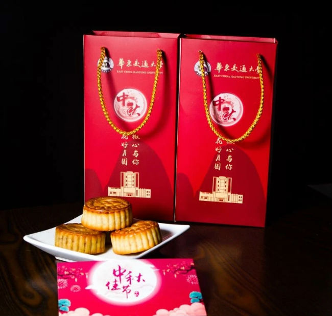 此次“花椒”(“花椒”为华东交大的简称、华交的谐音)定制月饼既有专属的校徽版月饼,又有围绕“家国共此时,月圆人团圆”主题定制的红色专属礼盒。礼盒印有“盛世华诞、月圆交心”,寓意“国”与“家”同在;以“团结、求实、创新、奋进”的新校风,寓意新征程、新目标、新使命。