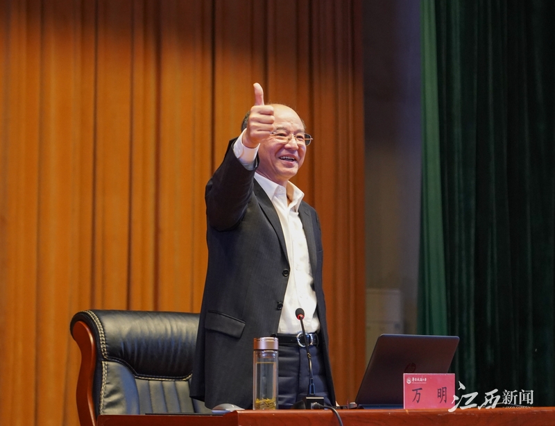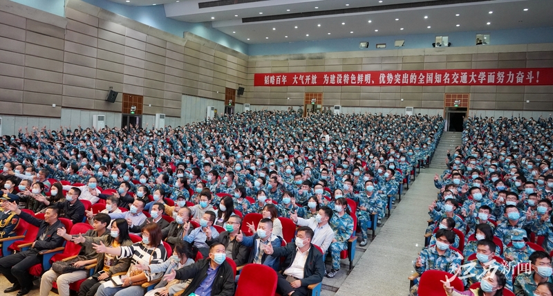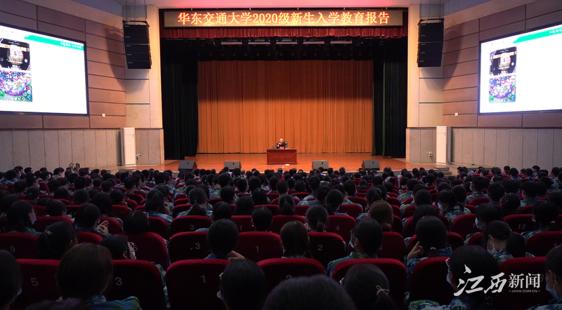 “官宣”“奥利给”“小朋友,你是否有很多问号”……10月9日下午,华东交通大学党委书记万明在南区礼堂给2020级新生作入学教育报告。他用幽默风趣的语言、丰富精彩的事例、深入浅出的哲理,将“做求真务实的交大人,怀民族复兴的报国志,有饮水思源的感恩心,走风雨兼程的自强路”四句箴言娓娓道来。线上线下,启发互动;主分会场,多“屏”共振,引发5000余名新生强烈共鸣,现场响起123次掌声。新生直呼:“手根本停不下来,为万老师打call!”