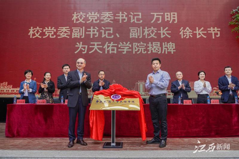 华东交通大学党委书记万明,党委副书记、副校长徐长节共同为天佑学院揭牌。(罗霄 摄)