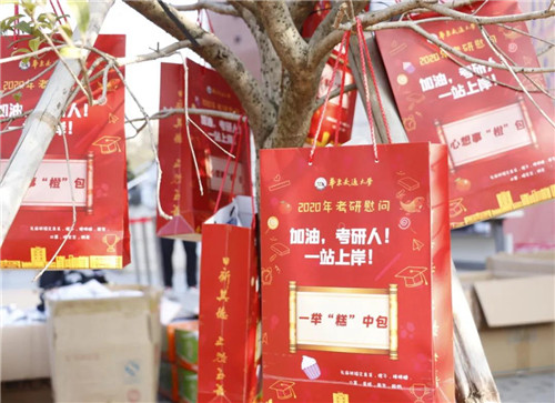 除此之外,还有福气满满的“大满贯”礼袋、一举“糕”中礼袋和万“视”顺意礼袋等,学校希望通过礼袋将好运祝福带给每一位考生。考研学子在收到贴心的好运礼袋后,还将好运祈福卡挂在心愿树上,写下自己的考研目标,满满一树美好心意。