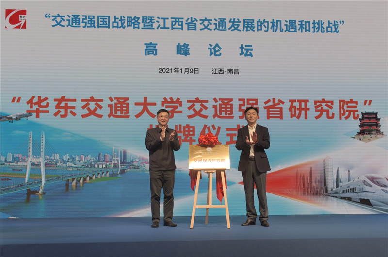 江西省交通运输厅厅长王爱和、省社联副主席汤水清出席开幕式并致辞。华东交通大学党委书记、高铁发展研究中心主任万明教授作《发挥现代综合交通运输体系优势,加快建设高铁经济带》学术报告。王爱和与万明共同为“华东交通大学交通强省研究院”揭牌。华东交通大学党委副书记、副校长,长江学者、国家杰青徐长节教授主持开幕式和院士学术报告。