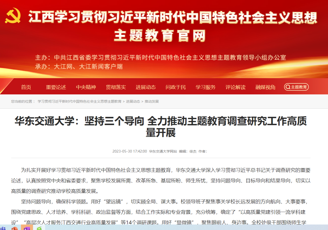 【江西主题教育官网】华东交通大学:坚持三个导向 全力推动主题教育调查研究工作高质量开展