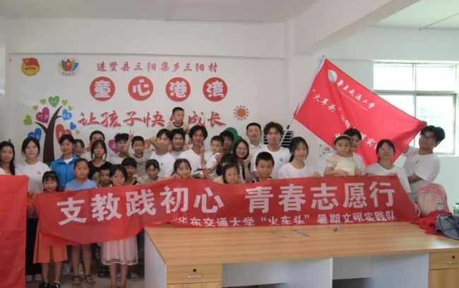 蝉声袅袅的七月,华东交通大学继续教育学院“火车头”大学生暑期社会实践队第一分队与江西省南昌市进贤县三阳集乡三阳村的孩子们进行了一场心灵的“碰撞”。