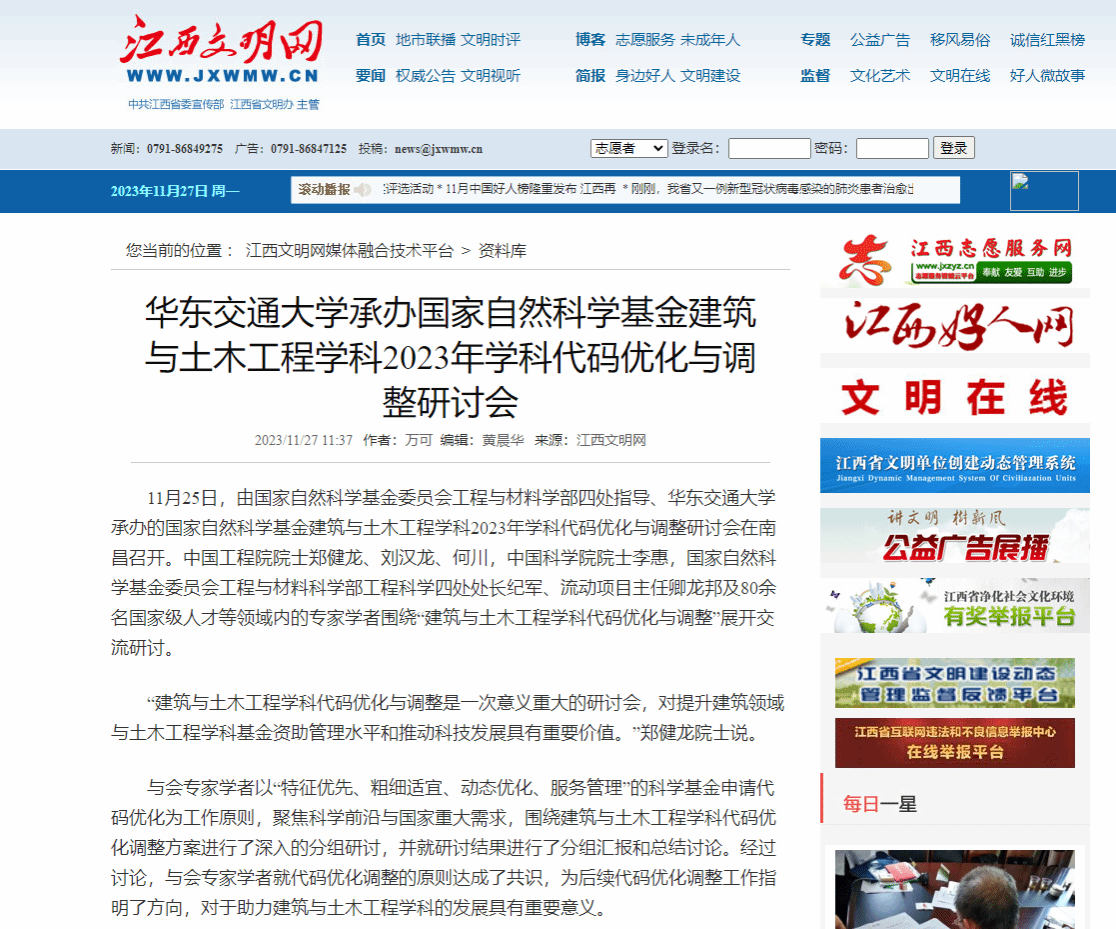【江西文明网】华东交通大学承办国家自然科学基金建筑与土木工程学科2023年学科代码优化与调整研讨会