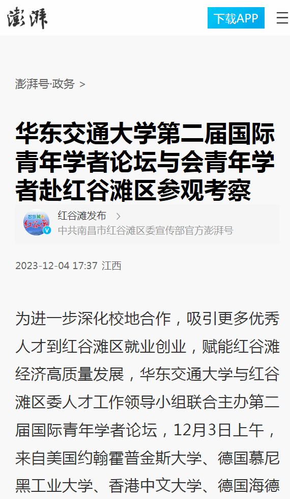 原标题:《华东交通大学第二届国际青年学者论坛与会青年学者赴红谷滩区参观考察》