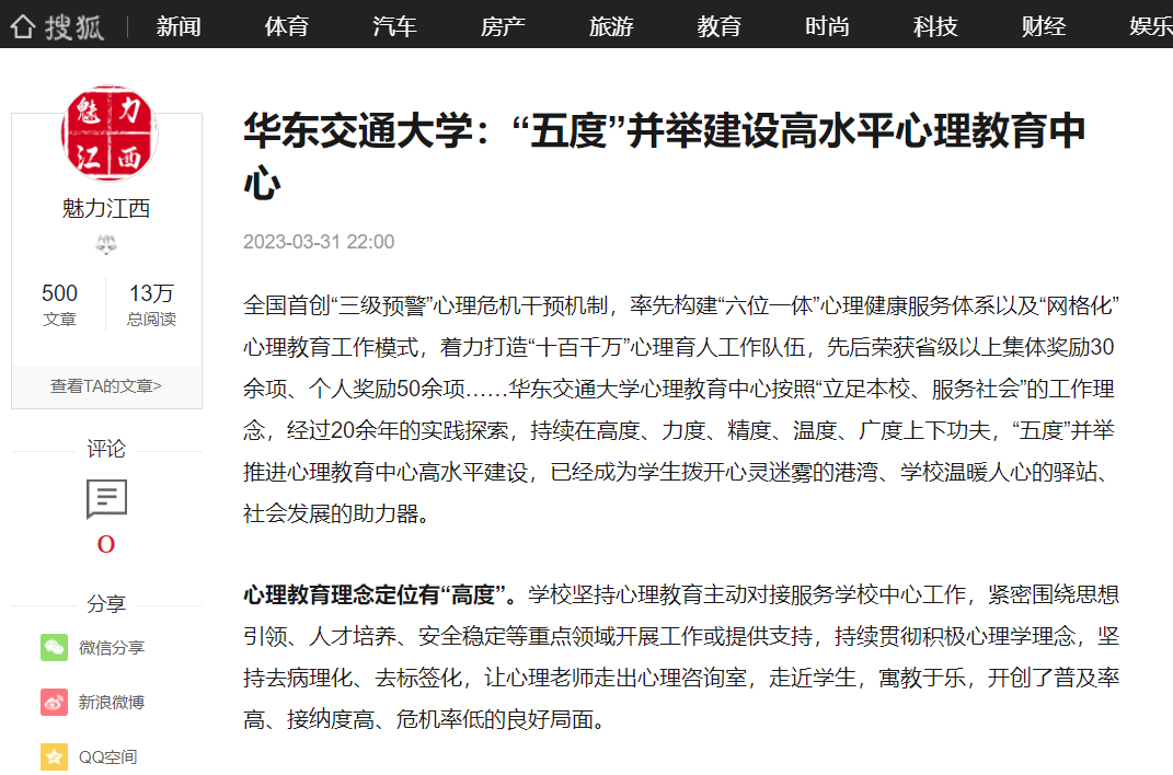 华东交通大学:“五度”并举建设高水平心理教育中心_工作_服务体系_江西省 (sohu.com)