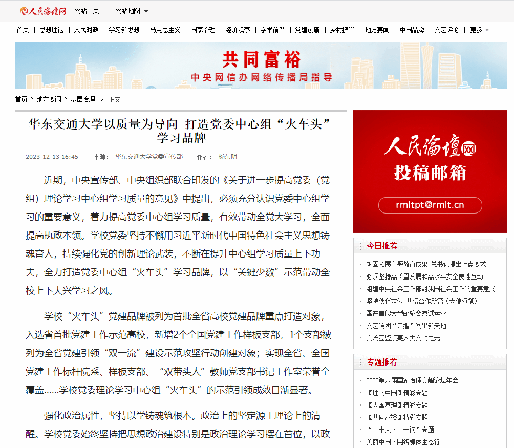 学校“火车头”党建品牌被列为首批全省高校党建品牌重点打造对象,入选省首批党建工作示范高校,新增2个全国党建工作样板支部,1个支部被列为全省党建引领“双一流”建设示范攻坚行动创建对象;实现全省、全国党建工作标杆院系、样板支部、“双带头人”教师党支部书记工作室荣誉全覆盖……学校党委理论学习中心组“火车头”的示范引领成效日渐显著。