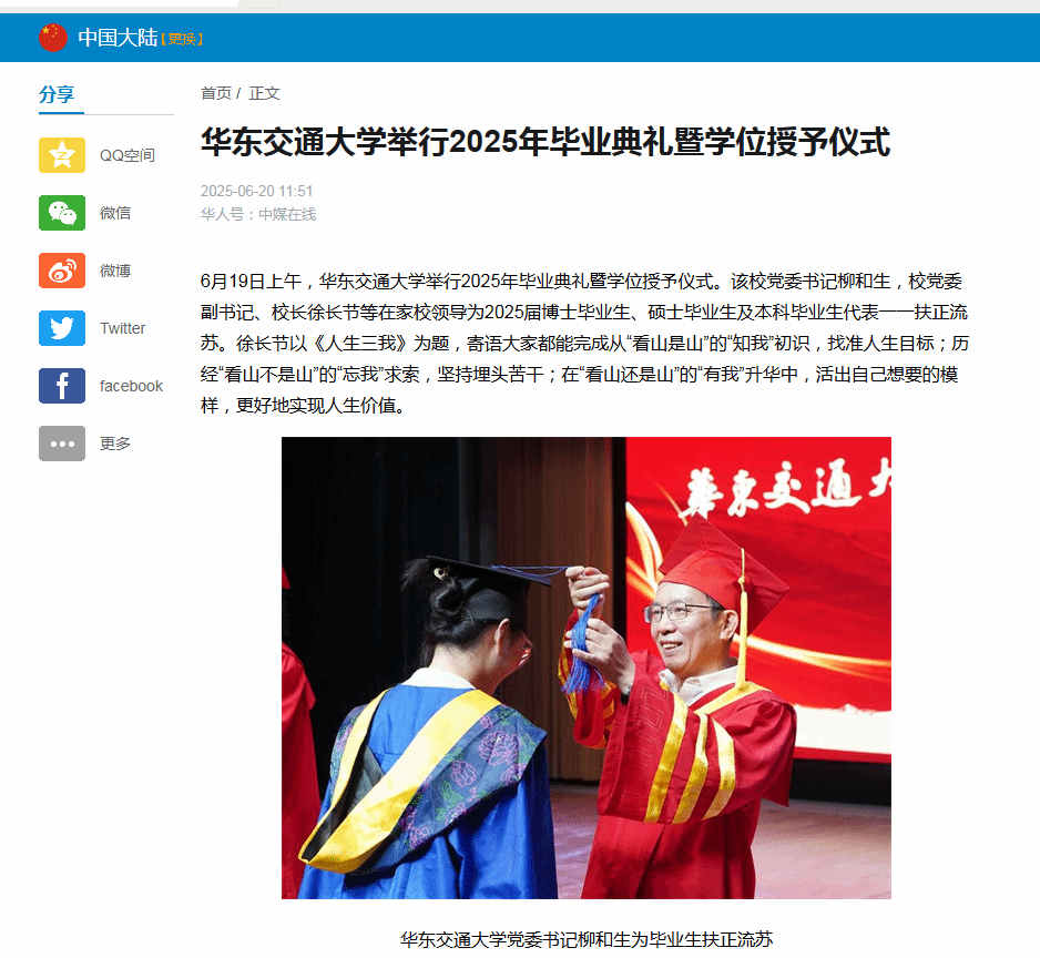 【华人头条】华东交通大学举行2025年毕业典礼暨学位授予仪式