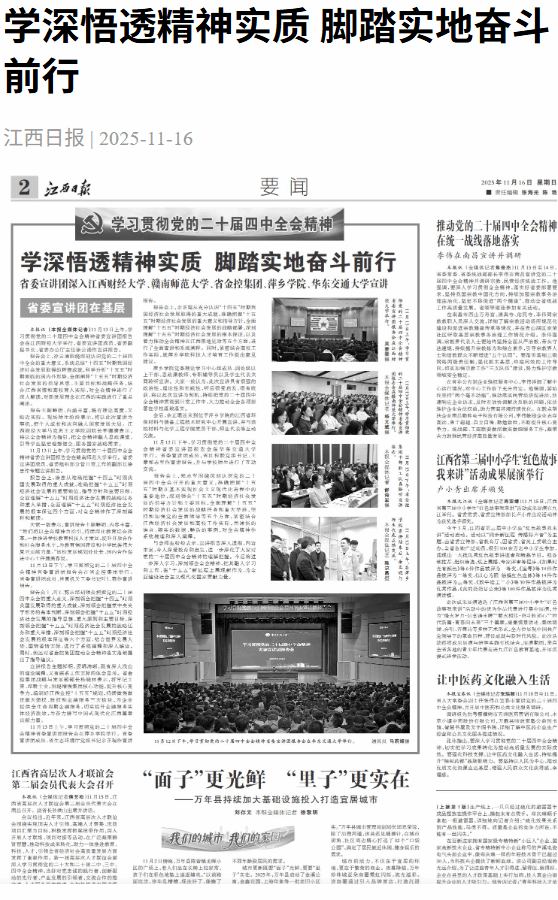 11月13日上午,学习贯彻党的二十届四中全会精神省委宣讲团报告会在江西财经大学举行。