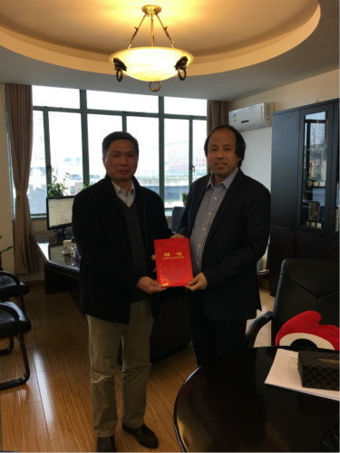 在浙江大学国家电液控制工程研究中心,罗玉峰与机电学院柔性引进的长江学者徐兵教授,就学科建设和人才培养等方面进行了交流,并向徐兵教授颁发了我校客座教授聘书。