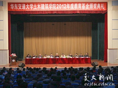 1月7日下午,土建学院2012年度教育基金颁奖典礼在南区礼堂举行。校党委委员、纪委书记汪立夏对长期来支持学校改革发展的广大校友和单位表示感谢,对专程返回母校参与颁奖典礼的校友表示欢迎,对获得土建学院教育基金奖学金的同学表示祝贺。