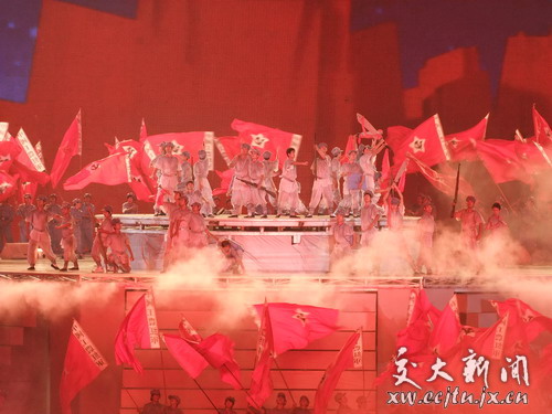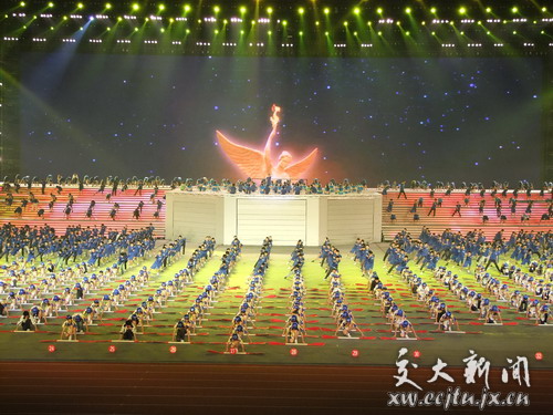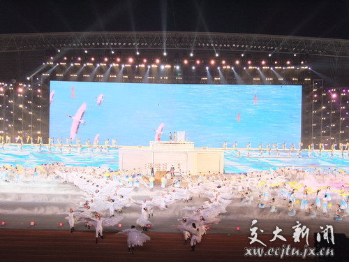 开幕式表演名为《新的飞翔》,分序《迎宾礼》、第一章《红土情》、第二章《鄱湖潮》、第三章《凌云志》、尾声《翔天歌》等5大篇章。艺术学院同学分别表演了5个篇章中的抚琴女、采茶女、渔姑渔夫、红军造型、拔河、奔跑等7个舞段。演出区域为运动场主舞台及核心区,颇为引人注目。 为备战开幕式表演,艺术学院于9月初即组织同学认真排练,并于10月2日奔赴鹰潭进行了为期20余天的集中训练。