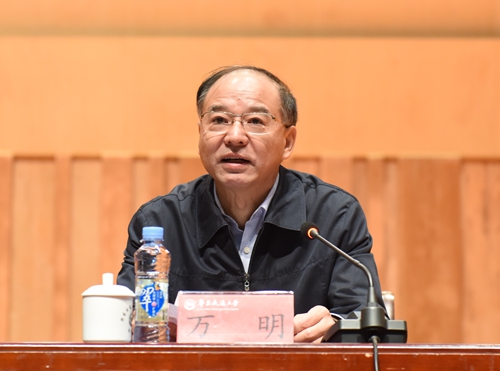 万明表示,认真学习宣传贯彻党的十九大精神,是当前和今后一段时期学校的首要政治任务。一是要狠抓学习领会不放松,各级党组织党的书记作为第一责任人,要按照学校学习宣传贯彻党的十九大精神工作方案,组织师生党员原汁原味学习党的十九大精神,准确把握其深刻内涵和精神实质;二是要狠抓融会贯通不放松,全体教职工要把学习贯彻党的十九大精神同把握十九大作出的各项战略部署贯通起来,同落实立德树人根本任务贯通起来,同实现中长期发展规划各项任务贯通起来,全面推进学校的改革发展;三是要狠抓实现转化不放松,全校上下要把党的十九大精神转化为以一流学科专业创建、引领区域行业一流大学建设的生动实践,在书写百年交大梦的壮丽蓝图中,为全省经济社会发展做出新的更大贡献。
