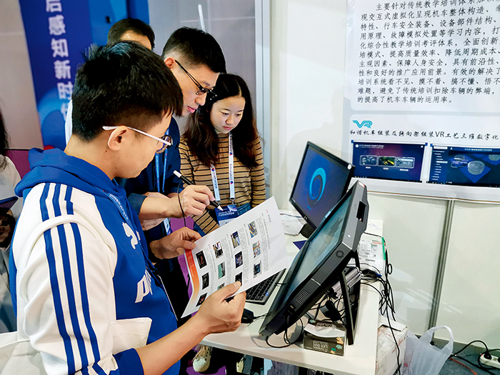 在2019 世界VR 产业大会上,华东交通大学轨道车辆VR/AR研究室科研人员