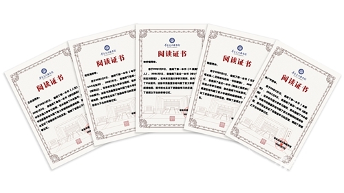 “阅读证书”上清晰地显示出大学期间自己借阅的第一本书、最后一本书及借阅总量,勾画出专属的阅读地图,见证着勤奋学习的足迹。对于热爱阅读的小伙伴们,这份毕业礼物值得收藏。