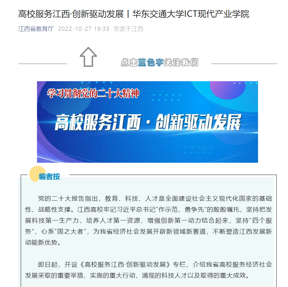 2019年,江西省出台《“2+6+N”产业高质量跨越式发展行动计划》,将新一代信息技术产业列入万亿级产业发展规划。因此,突破ICT核心技术,推动产业发展,实现产业高质量发展迫在眉睫。华东交通大学ICT现代产业学院的建设正是为了对接江西省的“2+6+N”产业发展规划,解决当前ICT人才供需结构性矛盾和技术供给瓶颈制约,助力相关产业发展。