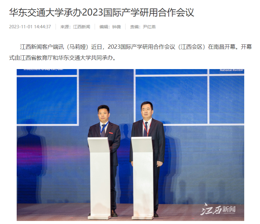 近日,2023国际产学研用合作会议(江西会区)在南昌开幕。开幕式由江西省教育厅和华东交通大学共同承办。